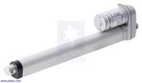 Deze 12 V lichte (LD) lineaire actuator met een 10: 1 tandwielreductie kan lasten tot 25 kgf [55 lbs of 250 N] heffen en is bestand tegen statische belastingen tot 250 kgf [550 lbs of 2500 N]. Het heeft een maximale snelheid van 28 mm / s [1,1 ″ / s] zonder belasting en 23 mm / s [0,9 ″ / s] bij maximale belasting. Eindschakelaars aan elk uiteinde maken de actuator gemakkelijk te besturen over zijn volledige bewegingsbereik, en de wormaandrijving zorgt ervoor dat de as zijn positie behoudt, zelfs als hij geen stroom heeft. Deze versie heeft een 10 inch slag en geen feedback potentiometer.
