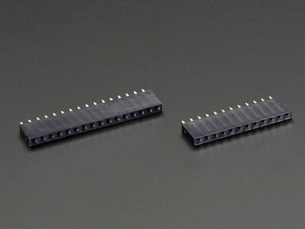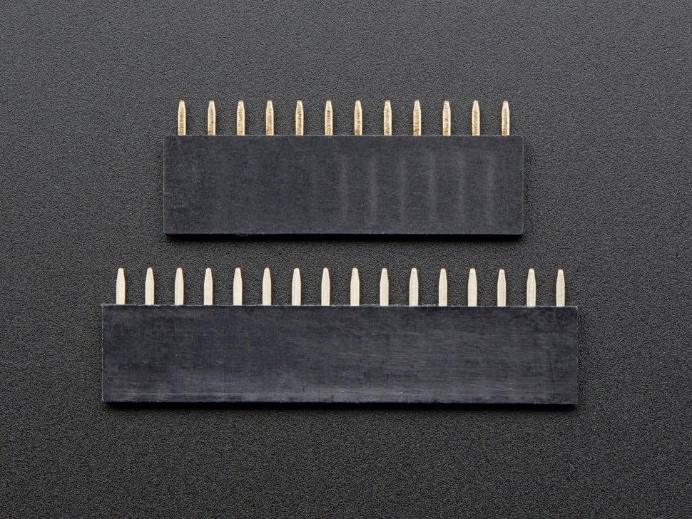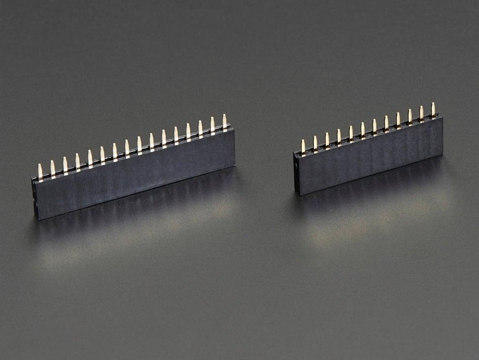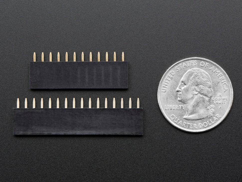 Wat doen ze? Ze worden aan weerszijden van het Feather-bord gesoldeerd. Nu kunt u FeatherWings aansluiten om meer mogelijkheden aan uw draagbare project toe te voegen. In tegenstelling tot onze Feather Stacking Headers zijn ze niet ontworpen om te 'stapelen', maar zijn ze compacter.