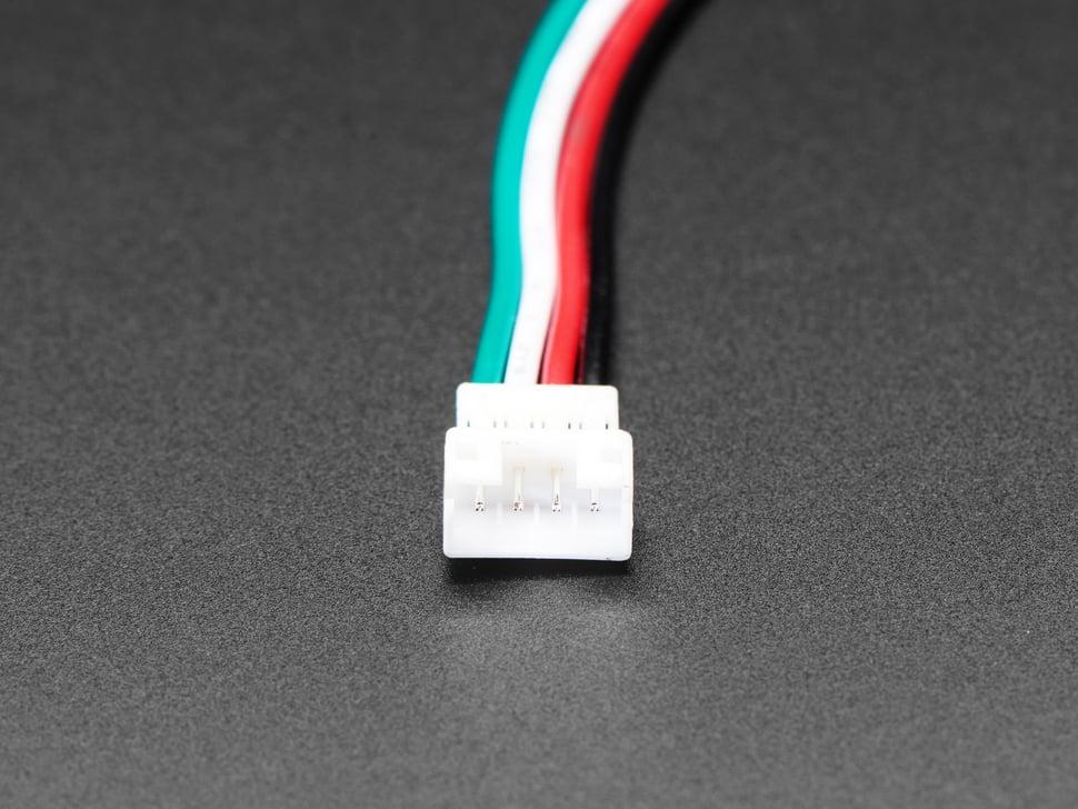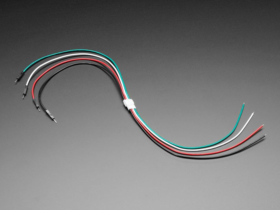 Deze kabel zet een JST PH 4-pins socket om naar vier afzonderlijke vertinde draden, perfect voor het verlengen en aansluiten van sensoren of LED's. De draden hebben kleurcodes: Zwart voor GND, Rood voor V+, Wit voor SDA en Groen voor SCL, zodat je ze makkelijk herkent en zonder fouten kunt installeren.