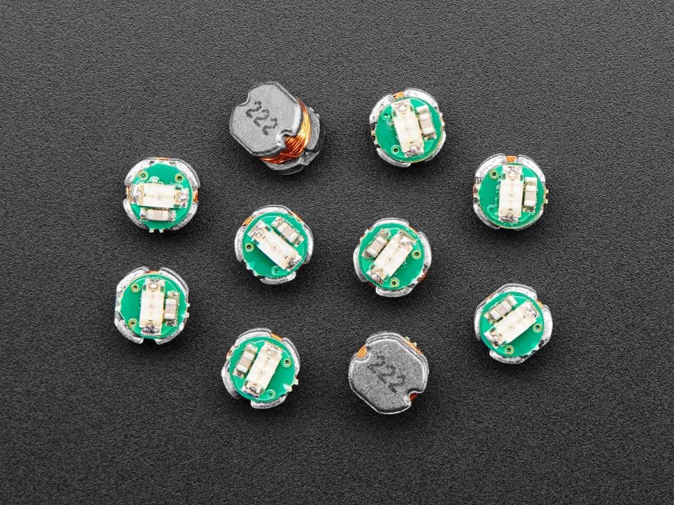 Elke kit bevat tien grote, green LED-inductoren. Wanneer u deze combineert met de Large Inductive Coil Kit, kunnen ze over grotere afstanden werken met een hogere efficiëntie dan kleinere varianten.