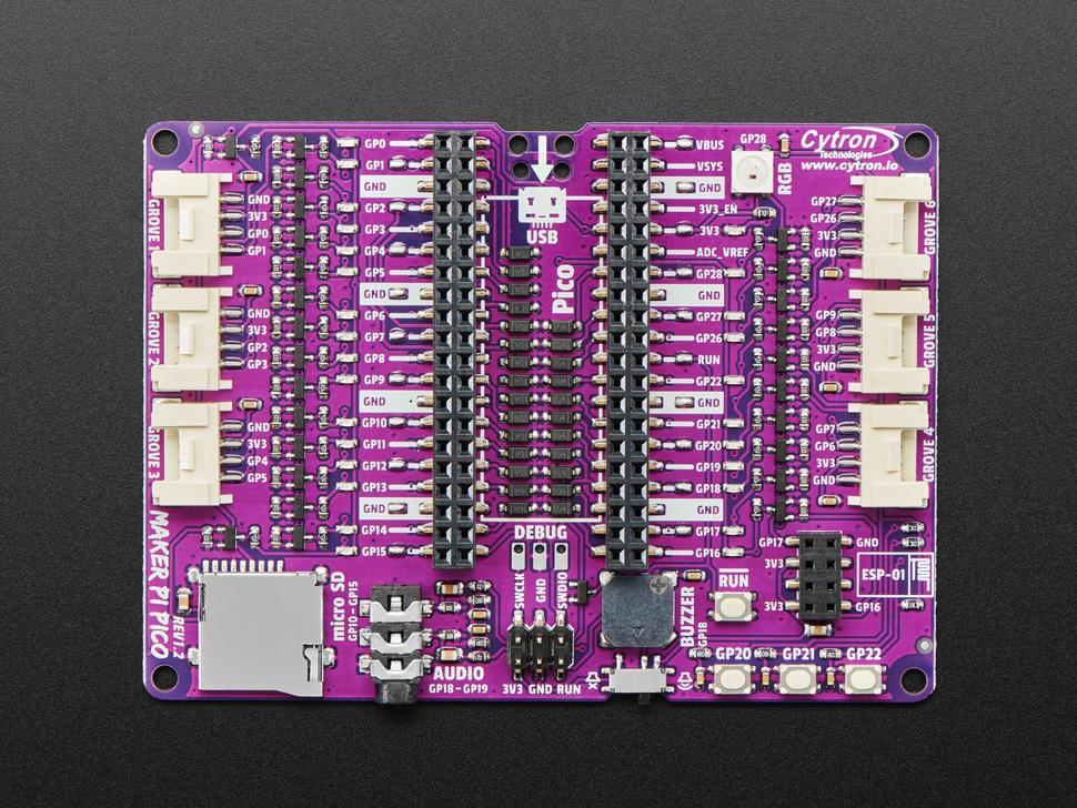 Dit compacte maar veelzijdige board is perfect voor je STEAM- en roboticaprojecten. Breid de functionaliteit moeiteloos uit door sensoren en output aan te sluiten met jumper wires of kabels. De Maker Pi Pico Base ondersteunt programmeren in CircuitPython, MicroPython en C/C++ met een eenvoudige USB verbinding met elke computer, inclusief Raspberry Pi SBC's. Sleep je programmabestand er gewoon naartoe om aan de slag te gaan.