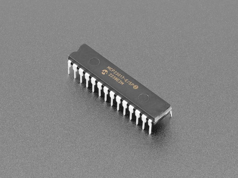 Voeg nog eens 16 pinnen toe aan je microcontroller met een MCP23017-poortexpander. De MCP23017 communiceert via twee I²C-pinnen die gedeeld kunnen worden met andere I²C-apparaten, wat in ruil daarvoor 16 universele pinnen oplevert. Elke pin is configureerbaar als ingang, output of ingang met een pull-upweerstand.