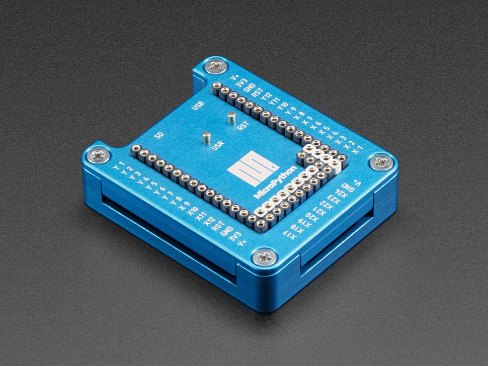 De behuizing van het pyboard is een slanke en robuuste oplossing voor het beschermen van alle versies van het pyboard. Hij is gemaakt van nauwkeurig gefreesd aluminium en heeft een opvallende geanodiseerde lichtblauwe afwerking, aangevuld met lasergegraveerde labels.