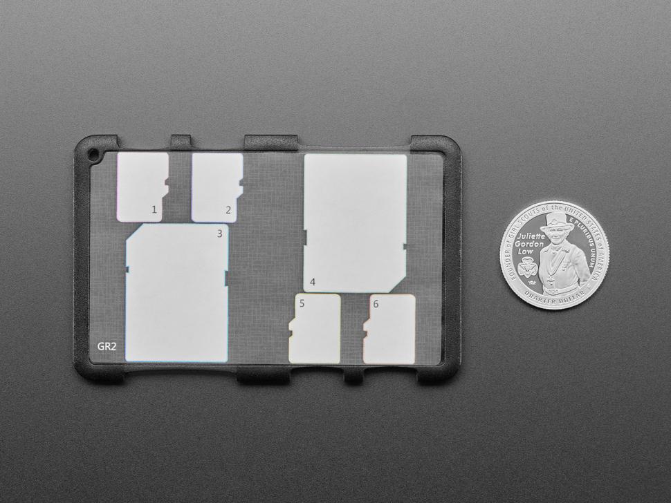 Elke bestelling bevat één houder voor twee SD-kaarten van normale grootte en vier microSD-kaarten. Als je met board zoals de Raspberry Pi of BeagleBone werkt, of als je veel datalogging of fotografie doet, weet je dat je microSD-kaarten zich als tribbles kunnen vermenigvuldigen. En die kaarten zijn zo klein dat je niet kunt markeren waar ze voor bedoeld zijn. Daar komt deze kaarthouder goed van pas.