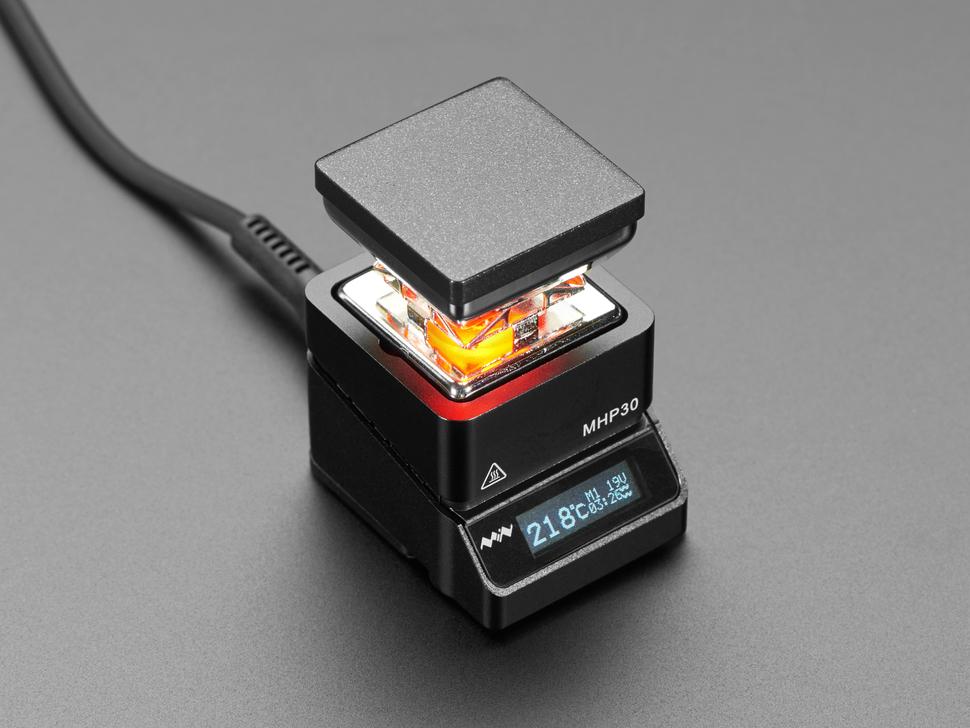 De kit bestaat uit de MHP30-controller en hete plaat, een slanke siliconen USB C-kabel, een krachtige USB -C-voeding die compatibel is met Amerikaanse stekkers en een EU-stekkeradapter. Gedetailleerde veiligheidsinstructies begeleiden ook firmware-updates.