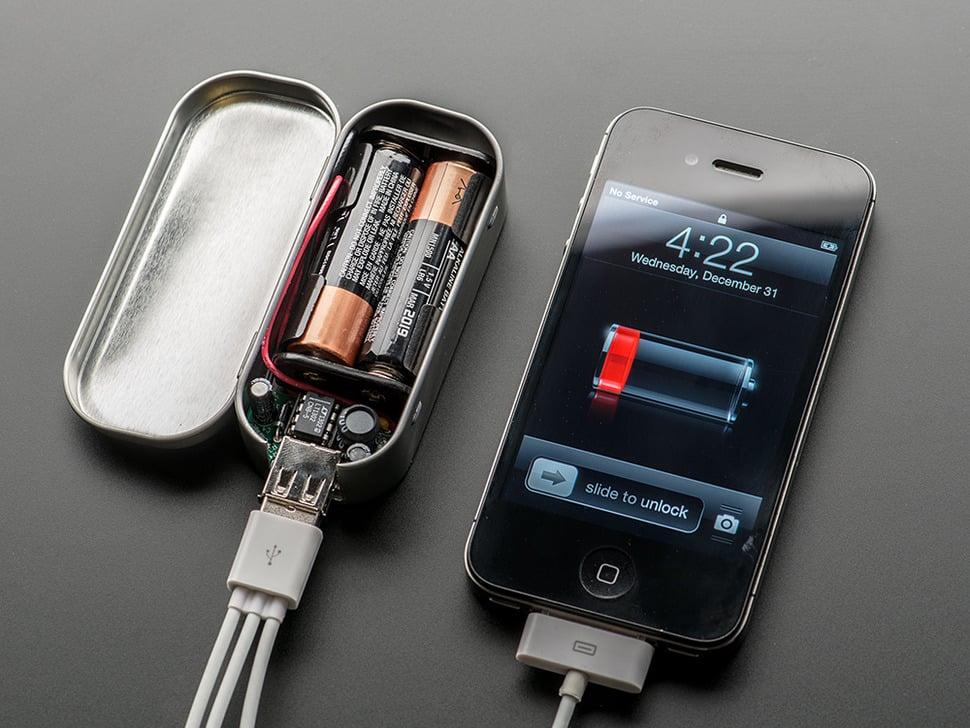 Het oplaadcircuit en de 2 AA-batterijen passen in een kleine ruimte, zoals een Altoids-kauwgom of muntblikje, en zullen je iPod urenlang laten werken, 2,5x meer dan je zou krijgen van een 9V USB-oplader! U kunt ook oplaadbare batterijen gebruiken.