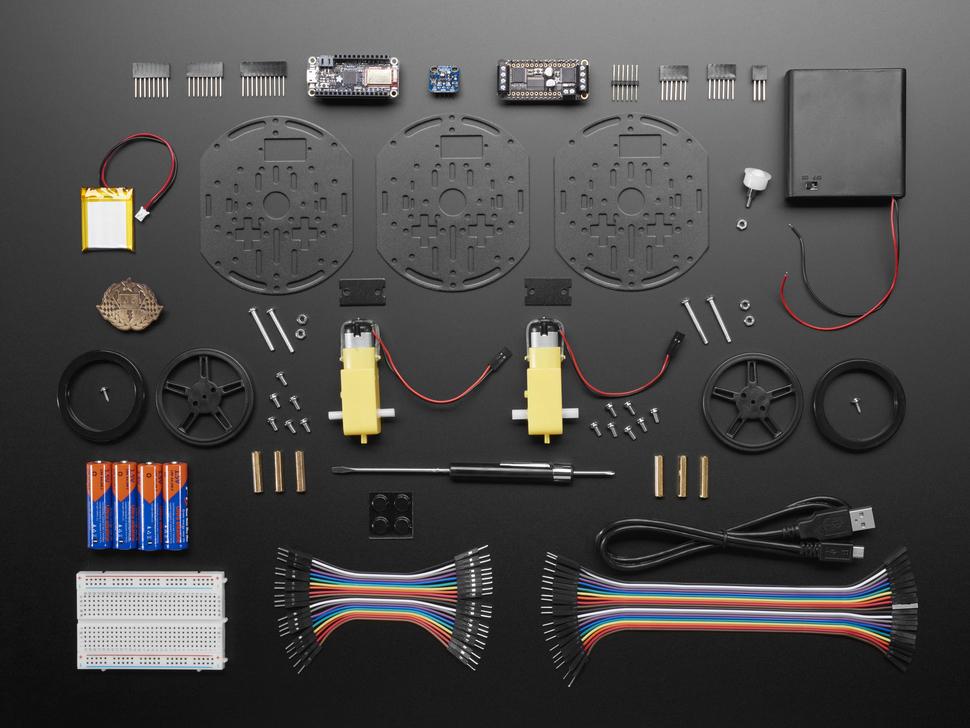 De kit bevat een feather Bluefruit LE-microcontroller, een motorbesturingsvleugel en een HTU21D-F temperatuur- en vochtigheidssensor board sensor breakout . De kit is gebouwd zonder te solderen en sluit naadloos op elkaar aan, waardoor de montage stressvrij en snel verloopt.