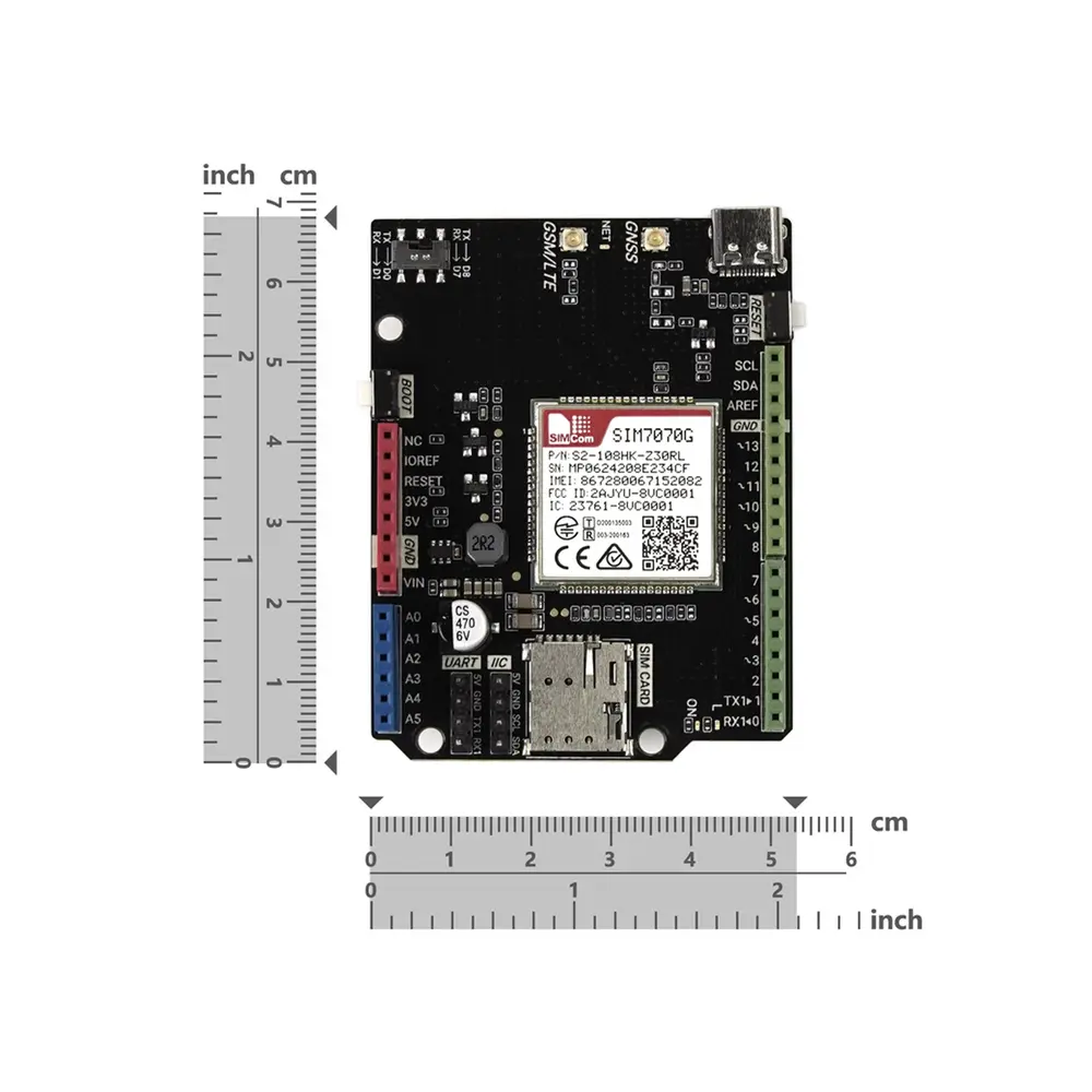 Uitgerust met GNSS-functionaliteit ondersteunt het board GPS, GLONASS, Galileo en BD. Dit maakt het bijzonder geschikt voor IoT-projecten die afhankelijk zijn van afstandsbediening en mobiele tracking. Zelfs als u niet zo bekend bent met netwerkprotocollen, maakt de SIM7070G integratie eenvoudig. Met een uitgebreide library met ingebouwde AT-commando's en gebruiksvriendelijke documentatie over communicatieprotocollen zoals HTTP, MQTT en FTP, maakt het board een snelle en soepele start mogelijk.