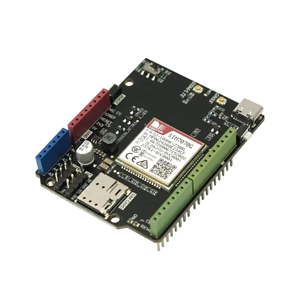 De NB-IoT- board , ontworpen voor Arduino -controllers, biedt een indrukwekkend scala aan communicatiemethoden, waaronder CAT-M, NB-IoT, GSM, GPRS, EDGE en GNSS-satellietpositioneringsfuncties. Bovendien zorgt de wereldwijde frequentiecompatibiliteit ervoor dat hij probleemloos aan uiteenlopende behoeften in verschillende regio's voldoet. Stel je voor dat je hem gebruikt in slimme logistiek, waar de nauwkeurige positionering efficiënte asset tracking garandeert, of in slimme steden, waar het lage stroomverbruik de operationele kosten aanzienlijk verlaagt. De praktische bruikbaarheid van deze board strekt zich uit van zowel prototypeontwikkeling als productie in kleine series, en biedt een optimale oplossing voor toepassingen die een laag stroomverbruik, lage latentie en een gemiddelde doorvoer vereisen.