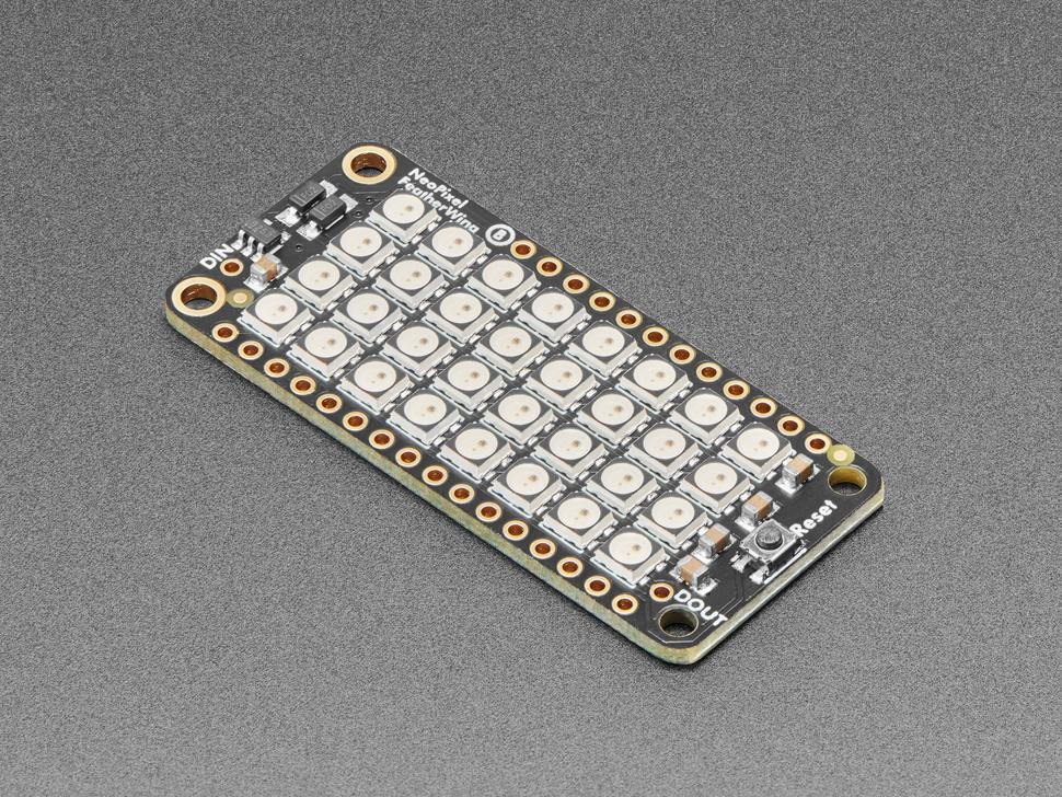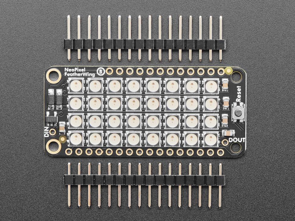 De NeoPixel FeatherWing beschikt board feather transformeren in een levendige display . Elke led in de 4x8-matrix kan individueel worden aangestuurd met slechts één pin, waardoor hij zowel krachtig als gebruiksvriendelijk is.