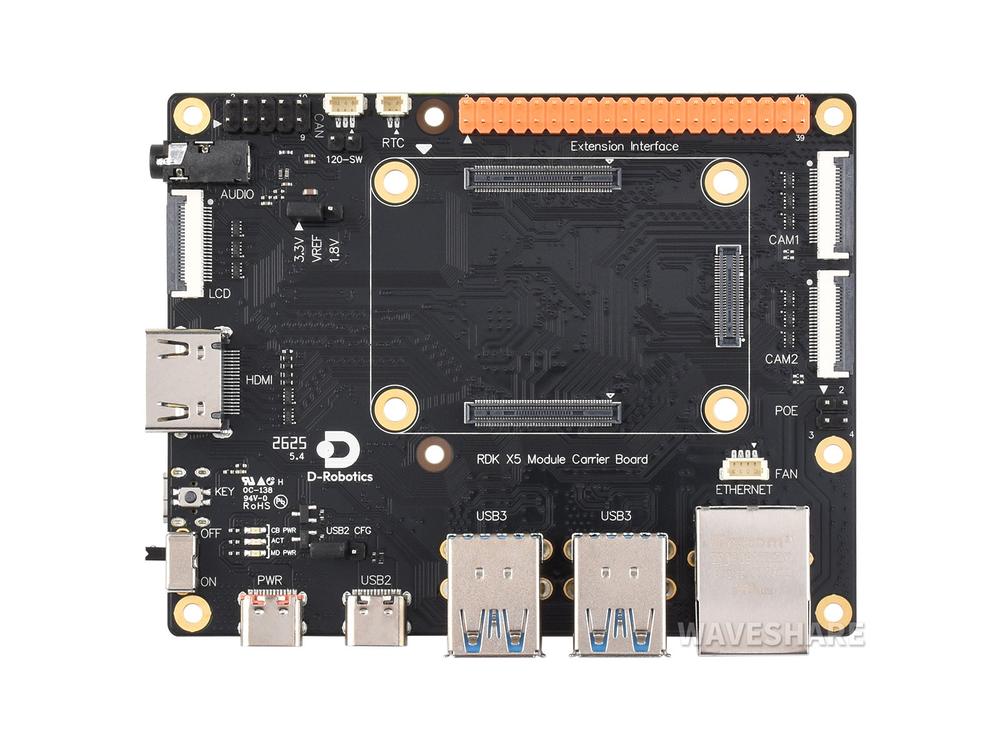 De D-Robotics RDK X5 MD Carrier Board is ontworpen voor alle varianten van de RDK X5 MD Module, en biedt naadloze integratie en verbeterde prestaties voor allerlei projecten.