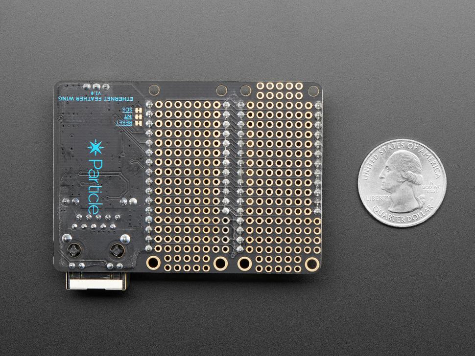 De geïntegreerde Ethernet FeatherWing , met de WIZnet W5500-chip, biedt snelle Ethernet-functionaliteit en transformeert uw Argon, Boron of Xenon in een efficiënte Ethernet-gateway zonder dat dit ten koste gaat van de RF-prestaties. De driver is opgenomen in het Mesh Device OS, wat zorgt voor een moeiteloze installatie via de Particle mobiele app.