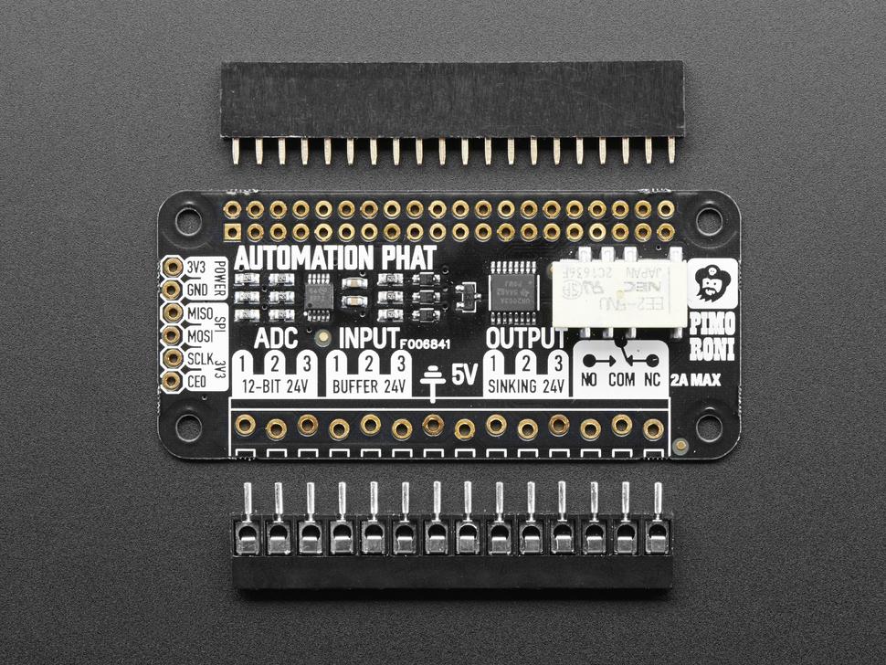 De Automation pHAT is compatibel met alle Raspberry Pi modellen met een 40-pins GPIO- header en combineert uitzonderlijk goed met de Pi zero voor een compacte behuizing. Gebruik hem om taken te automatiseren, zoals het plannen van aquariumvoedingen of het beheren van kasirrigatiesystemen. Solderen is vereist voor de female header en broken out pinnen. Toegang tot uitgebreide functionaliteit via een beschikbare Python- library .