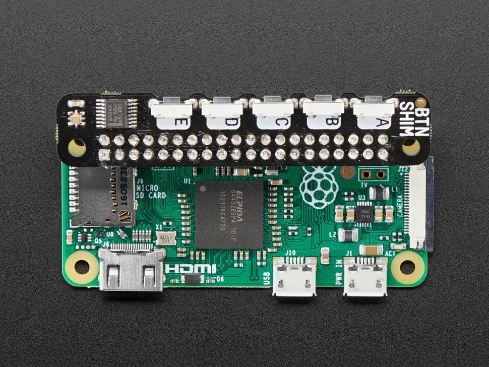 De Button SHIM van Pimoroni is voorzien van vijf voelbare drukknoppen en een RGB-status-LED, die precies op de GPIO-pinnen van uw Raspberry Pi passen en tegelijkertijd compatibel blijven met HAT's en pHAT's.