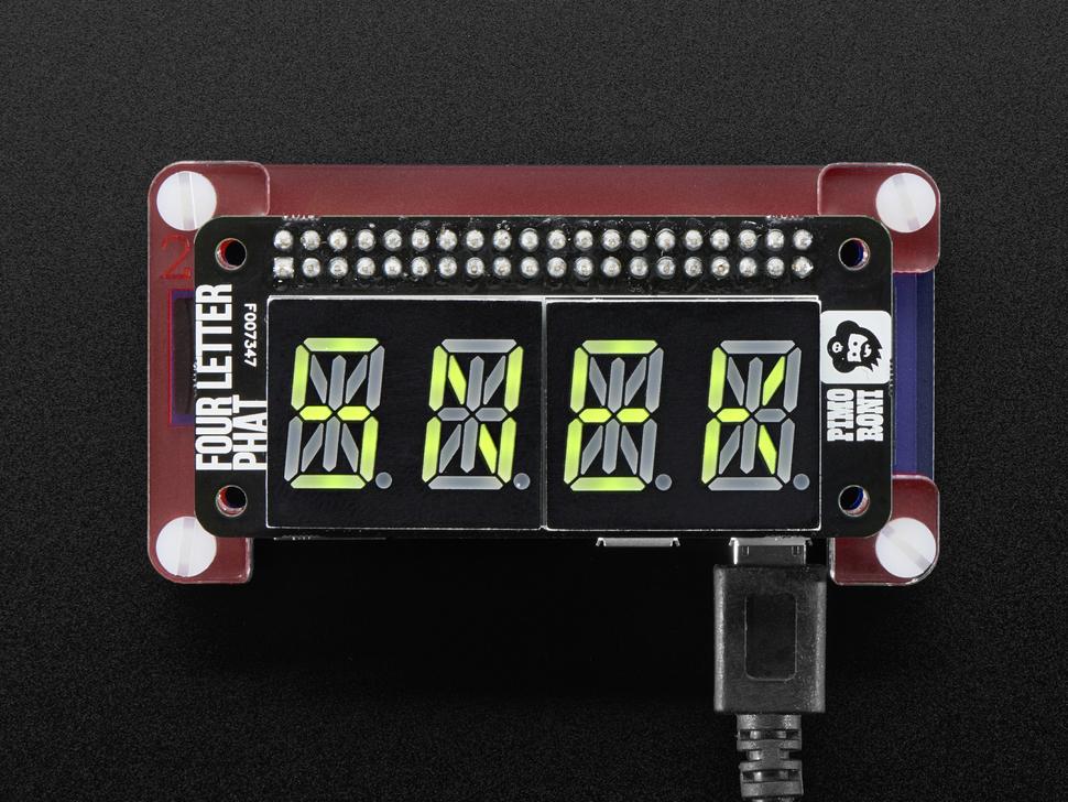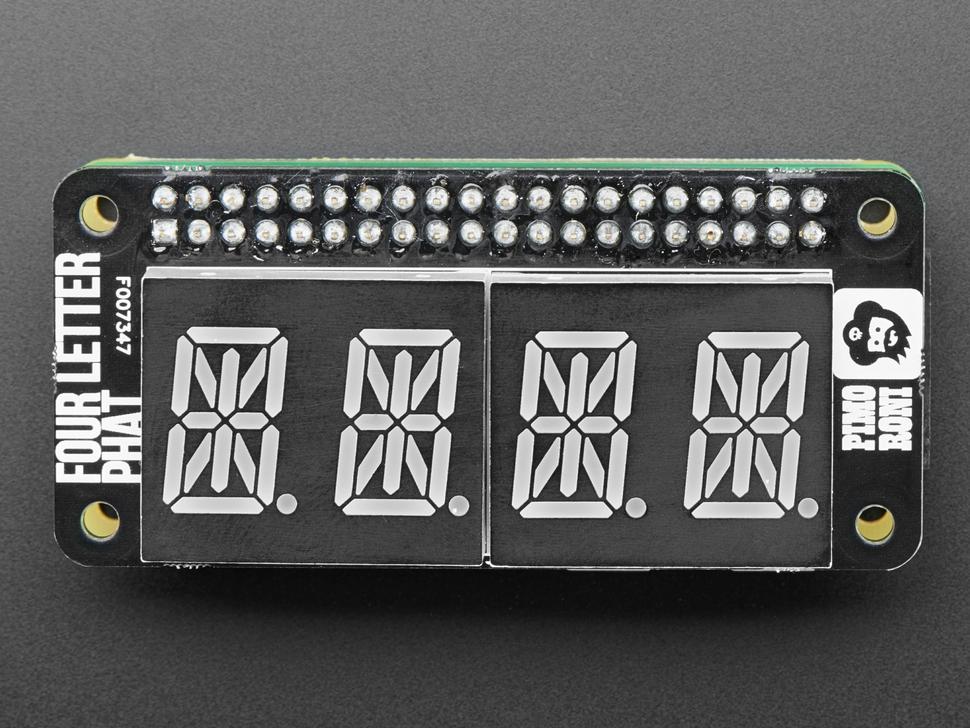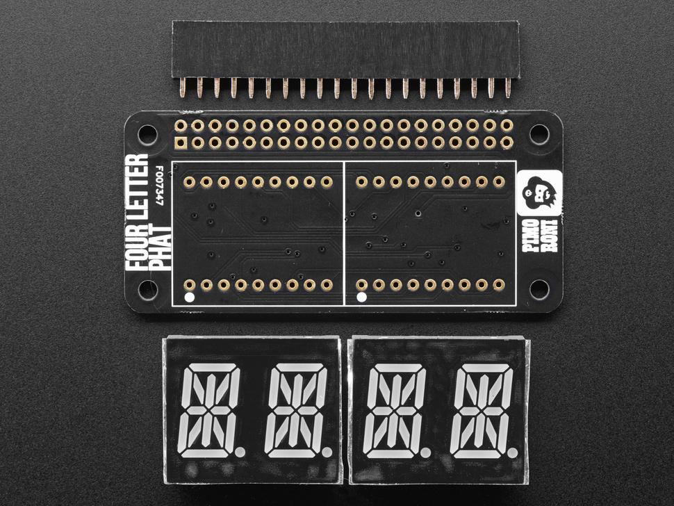 Belangrijkste kenmerken zijn: vier 14-segment displays, Raspberry Pi compatibiliteit met verschillende modellen, een intuïtieve Python- library en een noodzakelijke maar eenvoudige soldeerfunctie voor montage. De kit is compleet met een Four Letter pHAT PCB, twee displays en een 2x20 female GPIO- header . Let op: een Raspberry Pi zero is niet inbegrepen.