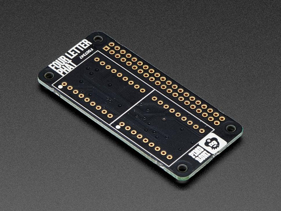 De Raspberry Pi Four Letter pHAT biedt een boeiende manier om tekst, cijfers en diverse tekens weer te geven met behulp van de vier 14-segment displays. De green leds doen denken aan klassieke digitale displays en worden vakkundig aangestuurd door de HT16K33-chip via I2C, wat multiplexing vereenvoudigt.