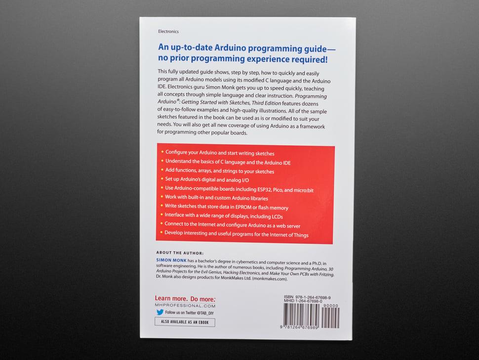 Arduino programmeren: Aan de slag met schetsen – Derde editie biedt een uitgebreide handleiding voor het beheersen van de softwareaspecten van Arduino . Duik in de wereld van Arduino -schetsen met de aangepaste C-taal, ideaal om programmeervaardigheden te leren of te verbeteren.