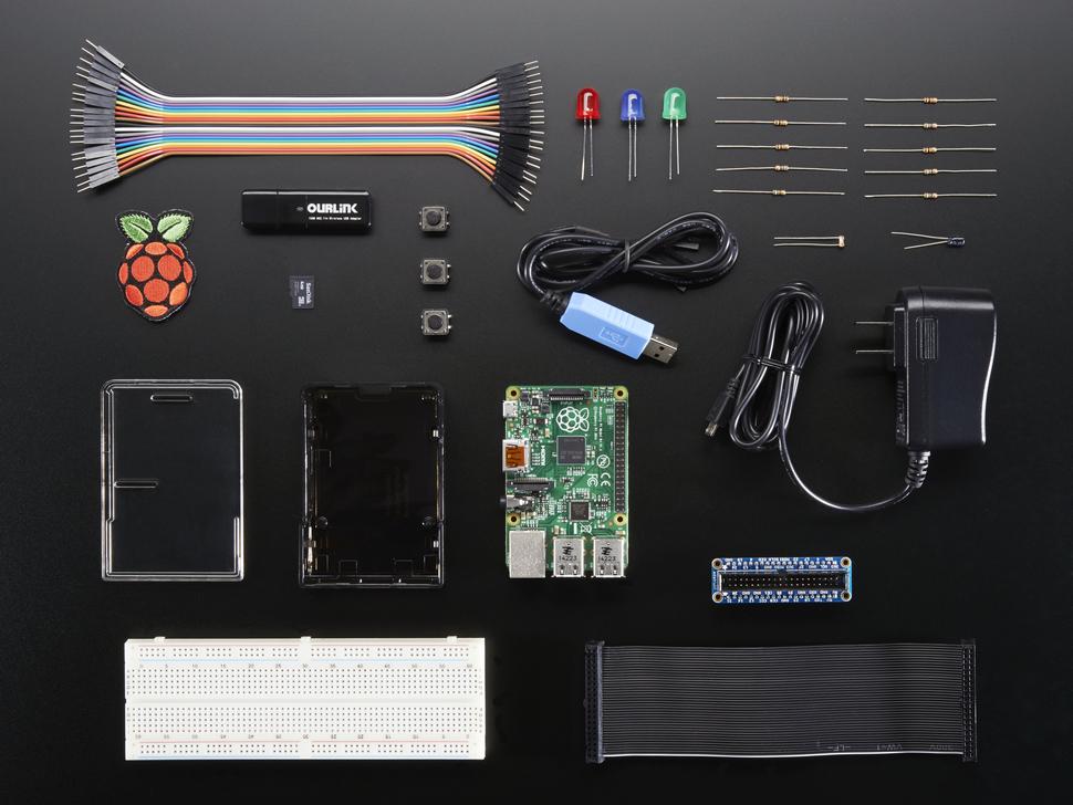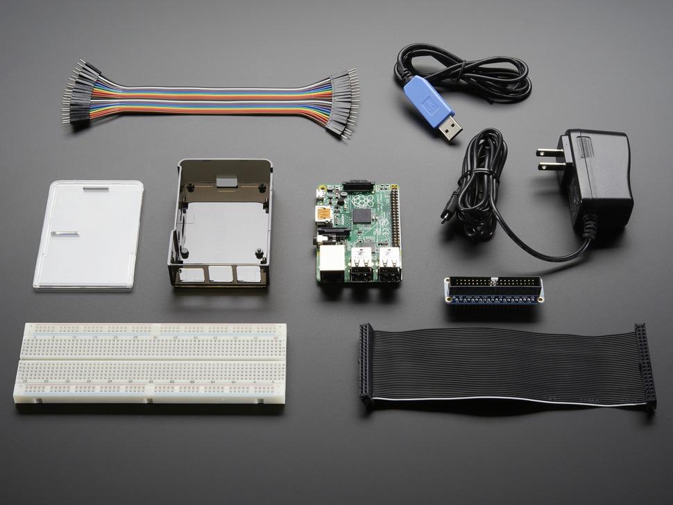 Binnenin vind je de Raspberry Pi B+ met vier USB poorten en verbeterde GPIO-connectiviteit. De duurzame Adafruit Raspberry Pi board + case biedt een veilige behuizing, terwijl de geassembleerde Pi Cobbler Plus het prototypen vereenvoudigt met een meegeleverd breakout en een 40-pins GPIO-kabel.