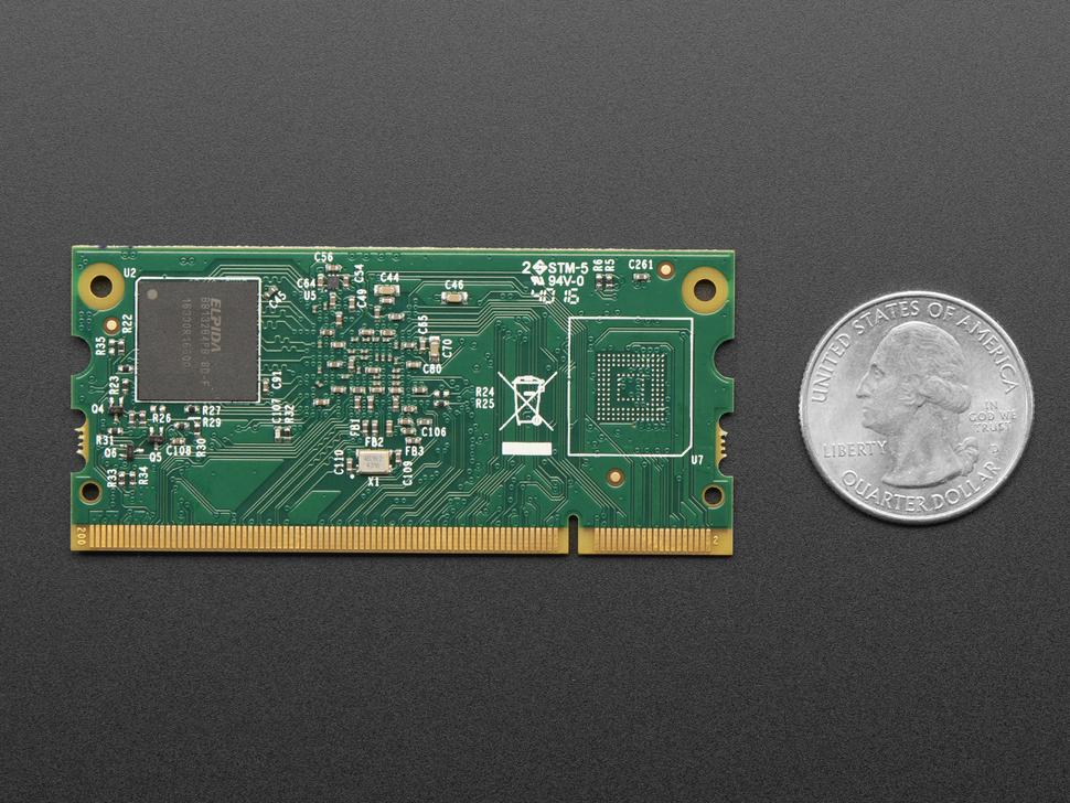 Deze complete configuratie is geïntegreerd op een compact 67,6 mm x 31 mm board , dat past in een standaard DDR2 SODIMM-connector, vergelijkbaar met die voor laptopgeheugen. De processorinterfaces zijn toegankelijk via de connectorpinnen, wat de volledige flexibiliteit van de BCM2837 SoC biedt. Dit betekent dat er meer GPIO's en interfaces beschikbaar zijn in vergelijking met de Raspberry Pi .