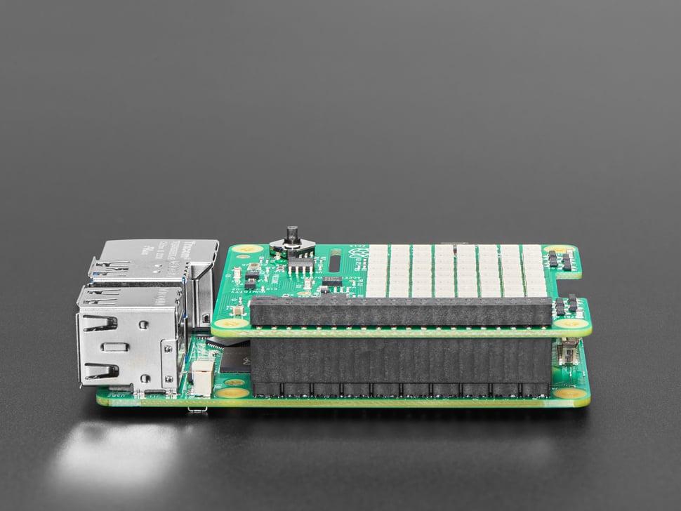 De 8x8 LED-matrix kan gegevens van verschillende sensoren display , je met een kompasprogramma met de magnetometer naar het geomagnetische noorden leiden, of gewoon spelletjes zoals Tetris, Pong en Snake spelen met de joystick. De joystick maakt ook gebruikersinteractie mogelijk met programma's die op de Raspberry Pi Sense hat draaien.