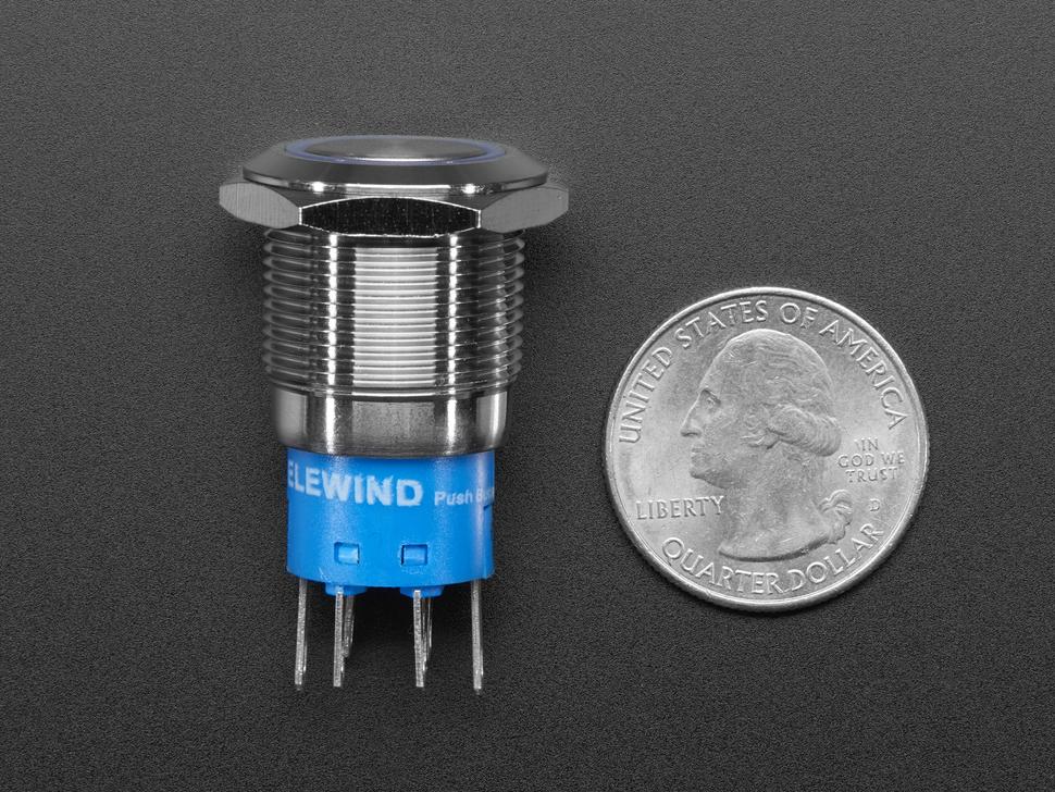 Onze robuuste metalen knoppen zijn nu voorzien van een full-color RGB LED-ringlamp, omhuld met verchroomd metaal voor duurzaamheid en stijl. Deze 19 mm Momentary-versie is eenvoudig te installeren door een gat van 19 mm te boren in materialen tot 0,45 inch dik, waarbij een rubberen pakking zorgt voor een waterdichte pasvorm.