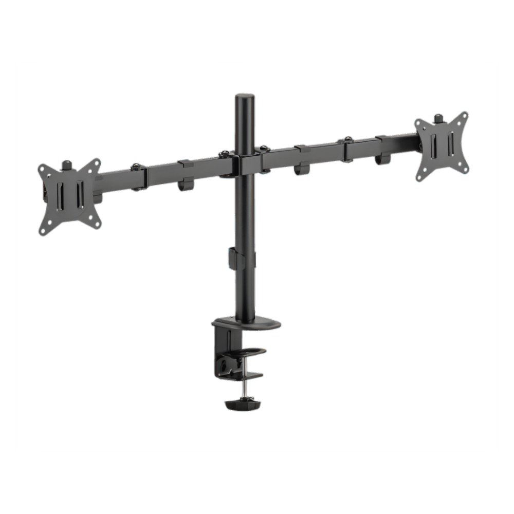 Met een VESA-compatibiliteit van 75x75 tot 100x100 past deze dubbele-arm beugel gemakkelijk op een breed scala aan schermen. De flexibele armen zorgen voor de ideale positionering, zodat je de perfecte hoek en hoogte hebt voor beter kijkcomfort en ergonomische efficiëntie.