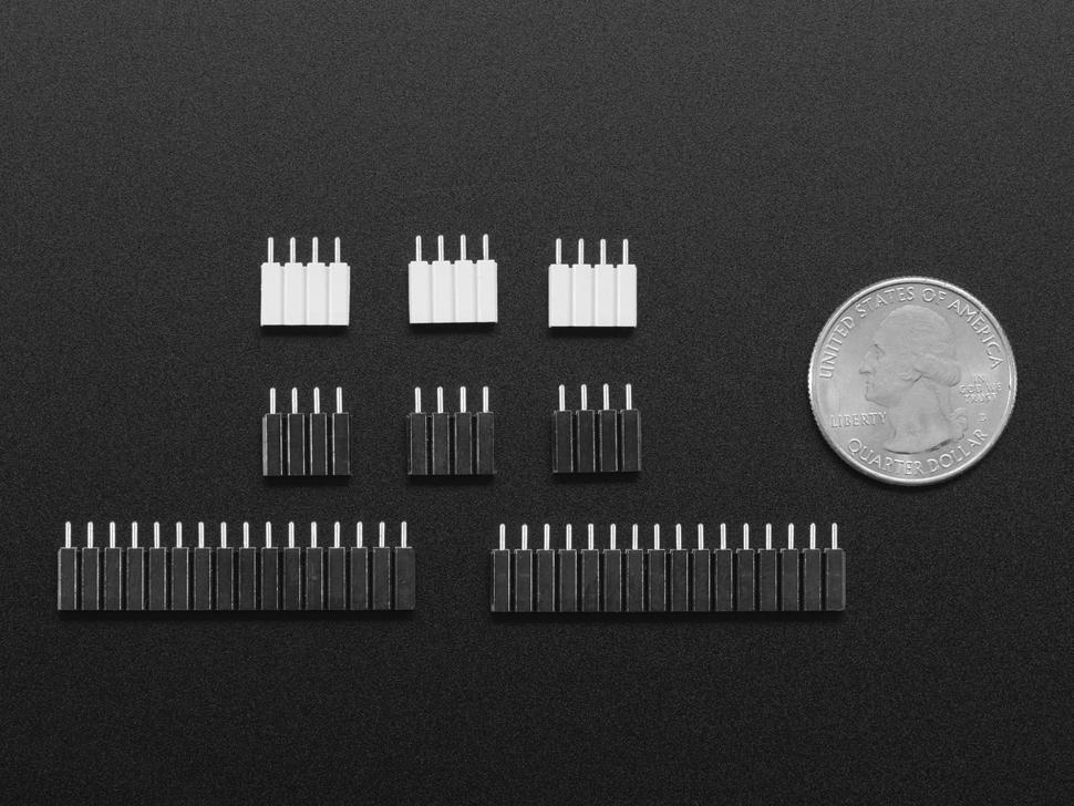 Het ontwerp omvat zwarte pinnen voor standaard I/O-poorten en de 4-polige GND-rail, terwijl witte pinnen geschikt zijn voor de 4-polige V+-rail en interne I/O-poorten. De female header zijn compatibel met standaard 0,65 mm vierkante male pinnen, waardoor ze veelzijdig zijn voor diverse toepassingen.