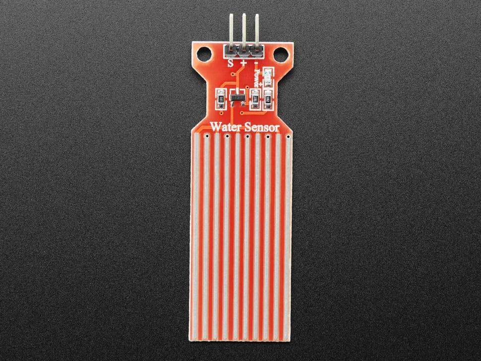 De sensor heeft een zeer licht gepolariseerde transistor die verbonden is met twee lange sets in elkaar grijpende sporen. Wanneer zelfs maar een klein beetje water op de printplaat terechtkomt en twee van de sporen raakt, schakelt de transistor in, waardoor de output hoog wordt.
