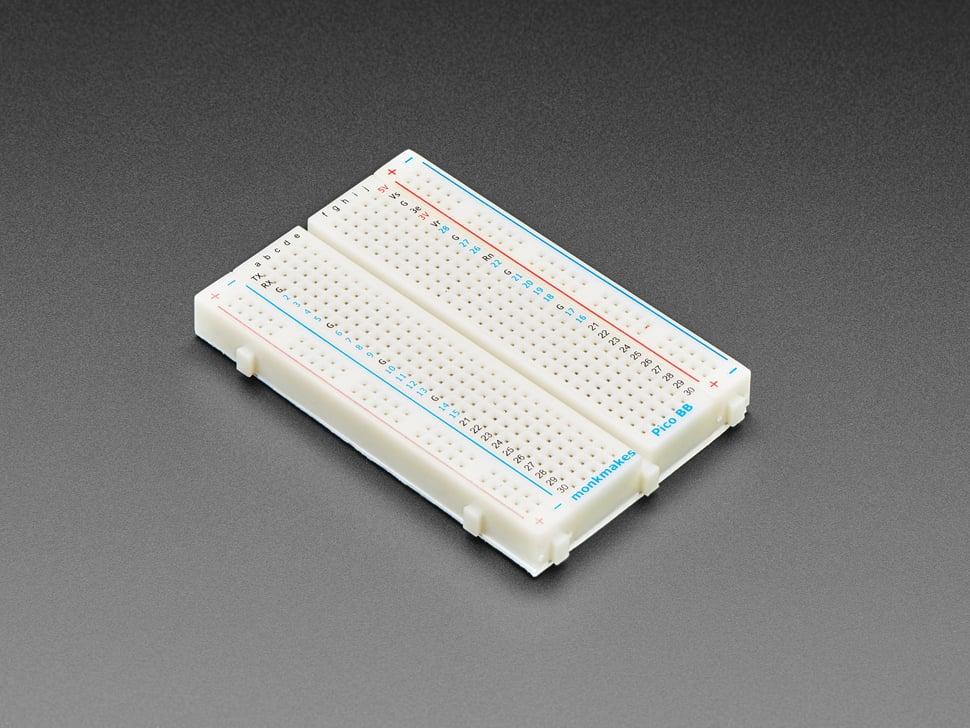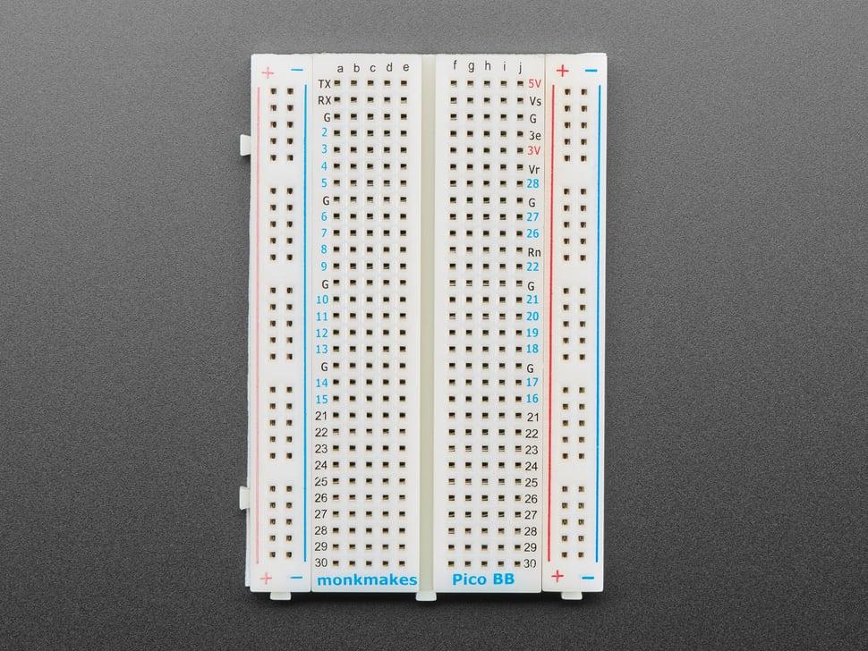 Het MonkMakes breadboard voor Pico vereenvoudigt je Raspberry Pi Pico-projecten door de pinnen duidelijk te labelen op het breadboard . Dit compacte, soldeerloze breadboard van 3,2" × 2,1" biedt een praktische oplossing voor al je elektronische projecten.