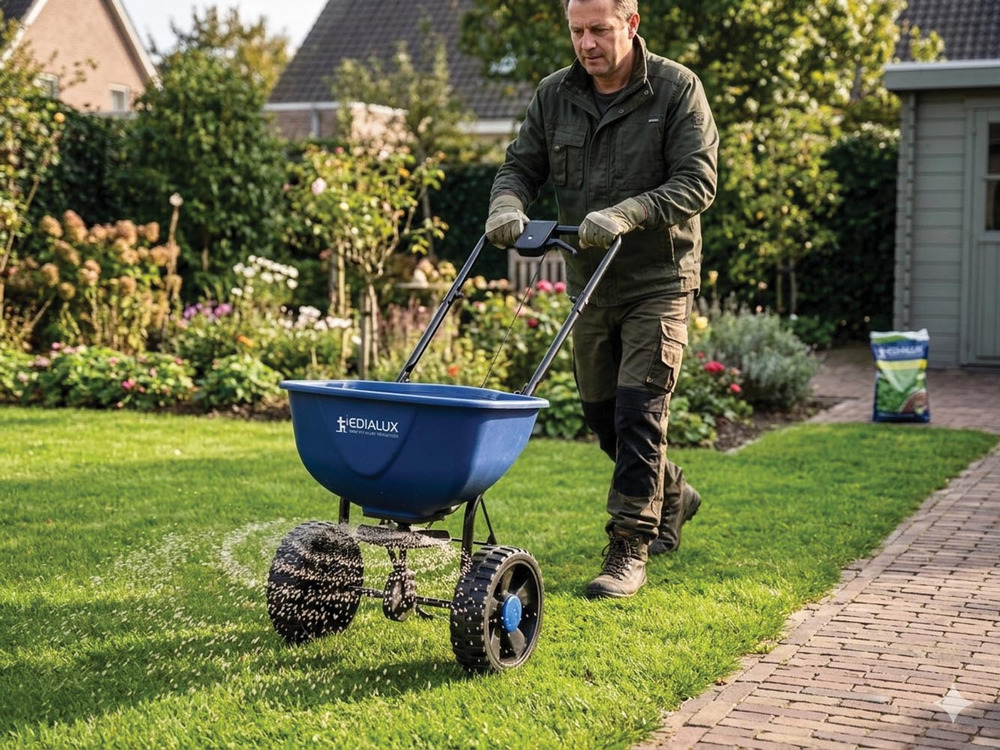 De Spreider biedt een veelzijdige spreidbreedte van 2,5 meter, waardoor gazononderhoud efficiënt en moeiteloos wordt. Met een stevige inhoud van 15 liter kan hij meerdere taken aan zonder dat je constant hoeft bij te vullen.