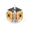 Het is belangrijk op te merken dat de Deluxe Thumb Joystick niet wordt geleverd met een dop, die apart moet worden aangeschaft. De kabels in de behuizing van de joystick zijn veel dikker dan de kabels op de trimpots en drukknopcomponenten. Bij het solderen aan BOB-9110 wordt aanbevolen om een pincet met fijne punt te gebruiken om elke pin in het juiste gat te geleiden voordat u deze naar beneden drukt.