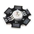 De Triple output High Power RGB LED van Sparkfun is een compacte maar krachtige lichtbron, die een gecombineerd output van 9W levert over drie kanalen. Deze LED is ontworpen om een krachtige lichtintensiteit uit te stralen, vergelijkbaar met de schittering van een supernova (hoewel dit een speelse overdrijving is!). De LED is gemonteerd op een PCB met aluminium achterkant, wat helpt bij de warmteafvoer. Vanwege het totale output van 9 W is echter extra warmteafvoer nodig. Elke LED heeft een operating voltage nodig van 2,2-2,6V voor rood, 3,2-3,8V voor green en 3,2-3,8V voor blauw.