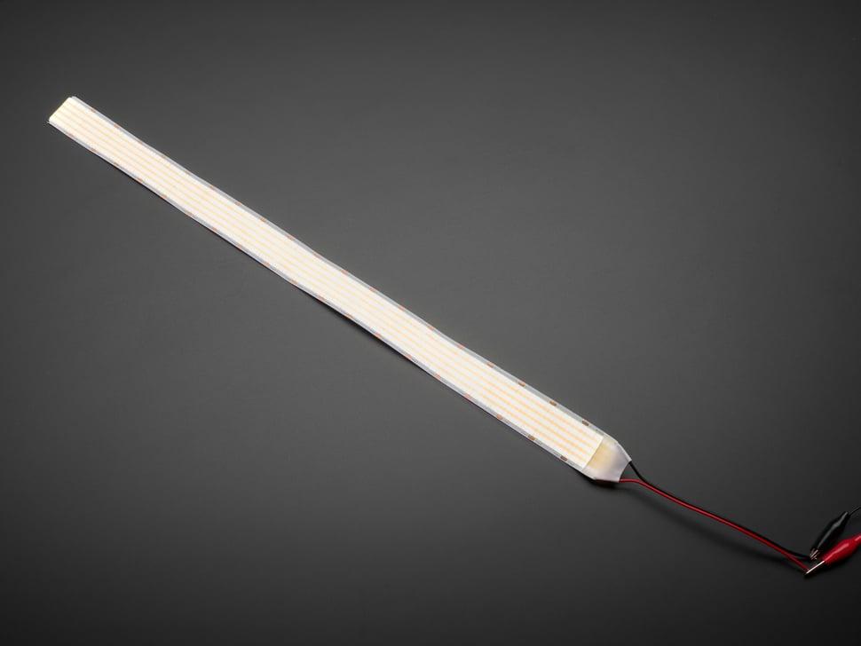Deze ultraflexibele LED-lintstrip biedt een naadloze manier om verbluffende visuele displays te creëren met zijn koelwitte gloed. Hij is 30 mm breed en 1 meter lang en is voorzien van 1600 microchip-on- board LED's, bedekt met een beschermende, diffuse siliconencoating.