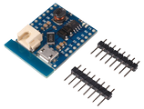 Dit shield voor de WeMos D1 mini bevat de nodige elektronica om een lithium batterij op de WeMos D1 aan te sluiten en de batterij ook op te laden. Met de USB poort op deze module kan de batterij worden opgeladen met een laadstroom van 500mA of 1A (instelbaar met de jumper onderop dit shield). De afgebeelde headers worden (los) meegeleverd.