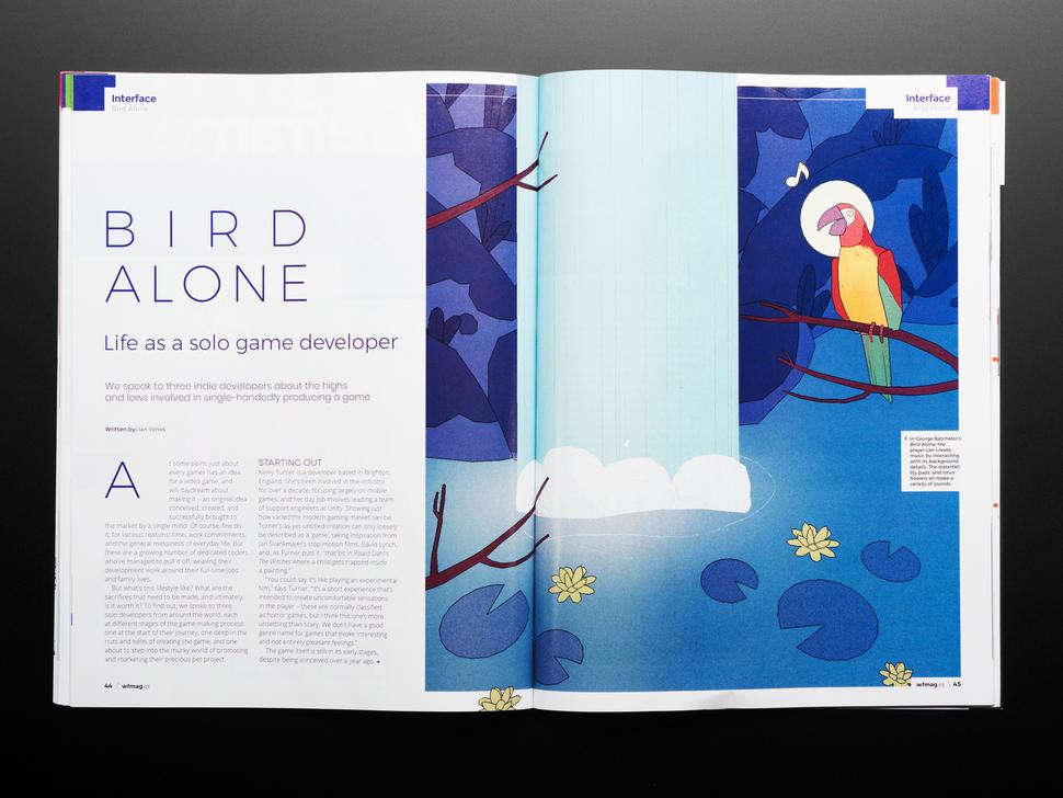 Wireframe Magazine, uitgegeven door Raspberry Pi Press, is een tweewekelijkse publicatie die zich verdiept in de complexiteit van videogameontwerp en -ontwikkeling. Deze uitgave bevat een uitgebreid artikel over de PyBadge, samen met artikelen over de Afrofuturistische game 'We Are The Caretakers'.